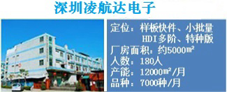 深圳凌航達電子和江陰深欣電路的兩個生產基地完整的覆蓋了不同訂單量的需要,從快速樣板(盲埋孔多層板3天交貨)到大批量,無需轉廠,降低轉單品質風險,為客人節省了時間和中間成本(無需重新打樣)。